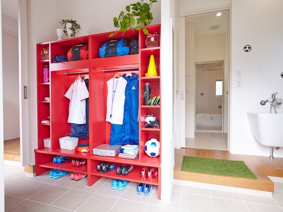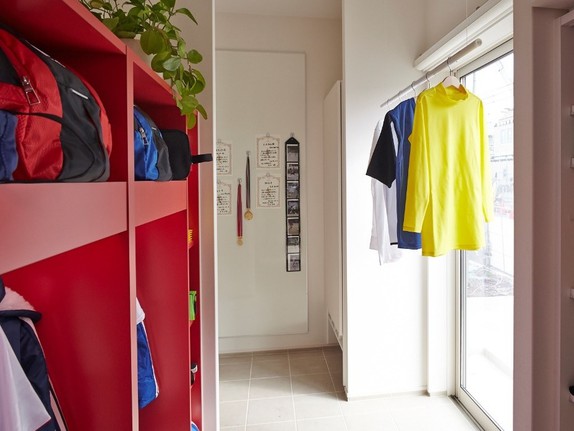 また、ロッカーベンチはアクティブ土間に設けるので、汚れものや臭いが気になる用具を室內に持ち込まずに済みます。