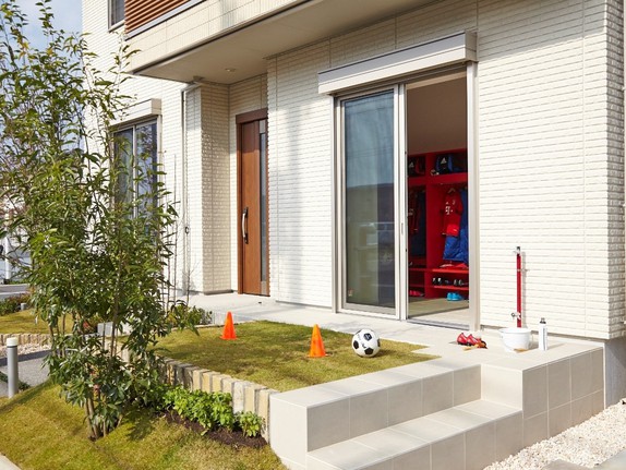 その後、ダイワハウスでは座談會で対談した建築士を中心に、サカママのお悩みと要望をかなえる間取りについて検討し、アイデアを盛り込んだ建物、「アクティブ土間のある家」として建設しました。サッカーだけでなく、野球やバスケットボール、また、アウトドアを楽しむすべての家族にお薦めしたい空間です。今回はそのポイントや特長をご紹介します。
