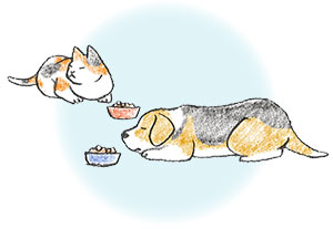 數(shù)匹一緒に飼っている場(chǎng)合は、同時(shí)に食事を與えると、食べるのが早い子が遅い子の分まで食べてしまうことがあります。一番良いのは、ご飯を食べ終わるまでずっと付き添い、別の子の分まで食べそうになったら止めてあげること。それが難しい場(chǎng)合や気が強(qiáng)い子同士でケンカをしてしまう場(chǎng)合は、違う部屋で食べさせると良いでしょう。貓と犬を飼っていて、貓の方が食べるのに時(shí)間がかかる場(chǎng)合は、犬が行けない高い場(chǎng)所にご飯を置いてあげるという方法もあります。必ず決まったご飯を決まった量だけ食べられるよう、しっかり配慮してあげてください。