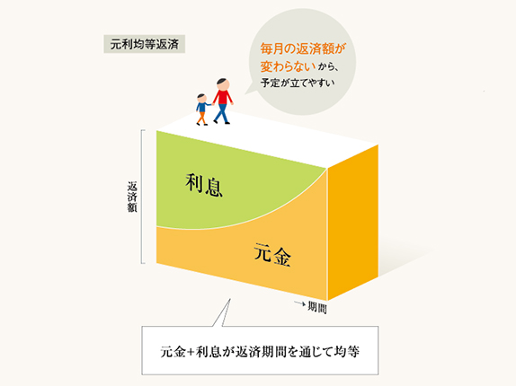 住宅ローンの毎月返済額には、借入元金の返済部分と利息の支払い部分が含まれています。その合計金額が、返済期間を通じて均等になる返済方法が、「元利均等返済」です。