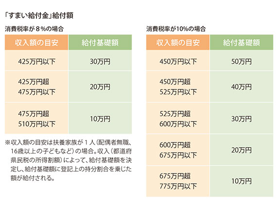 また、住宅ローン控除によるメリットが少ない層のために設けられた「すまい給付金」は、住宅を購入すると年収に応じて給付金が支払われる制度。消費稅率が10%に再引き上げされた際は給付額と対象者が拡大されます。