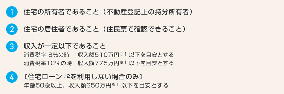 『すまい給付金』を受けられる人の主な條件は、以下の通りです。