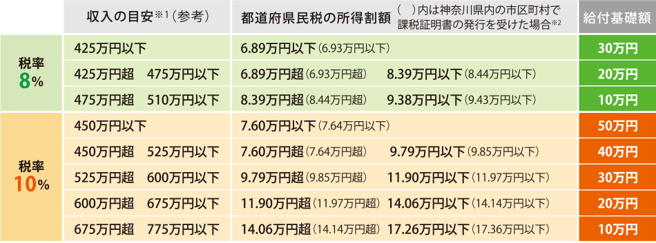 • ※2 神奈川県は、県民稅率が他の都道府県と異なるために設定するものですが、対象としている所得額は他の都道府県と同じです。