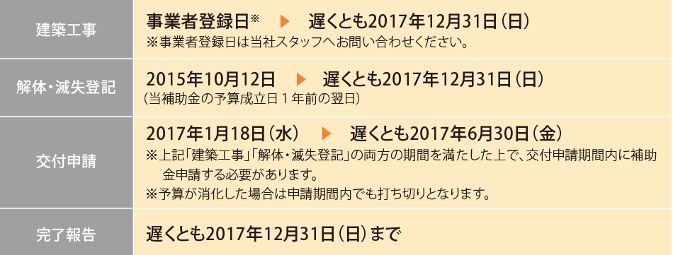• ?交付申請にあたって、解體工事契約締結が必要です。契約書がない場合には申請できません。