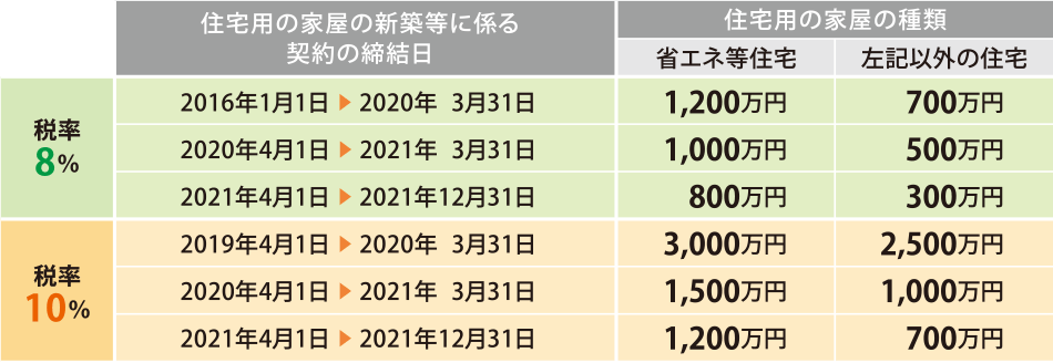 時期と消費稅率により非課稅限度額が変わりますので、契約時期をしっかりと確認しましょう。