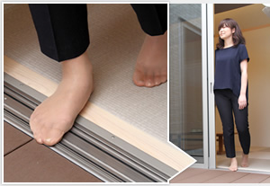 室內(nèi)外の段差をなくし、転倒防止に配慮。