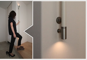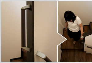 手すりを持ったまま曲がれる位置に設(shè)置。