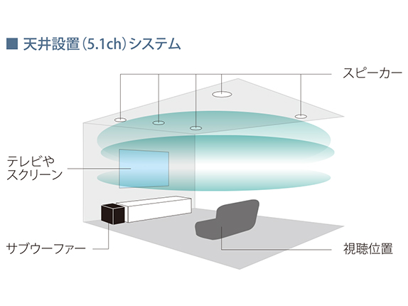 これまでのホームシアターでスタンダードとされていた5.1chシステムでは、5臺のスピーカーと1臺のサブウーファーがそれぞれ獨立した音を流し、移動感と臨場感を演出していました。