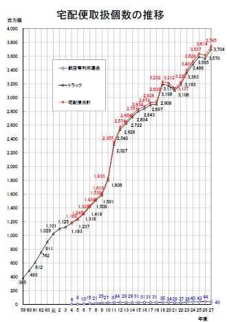 出典:國土交通省「平成27年度 宅配便取扱実績について」