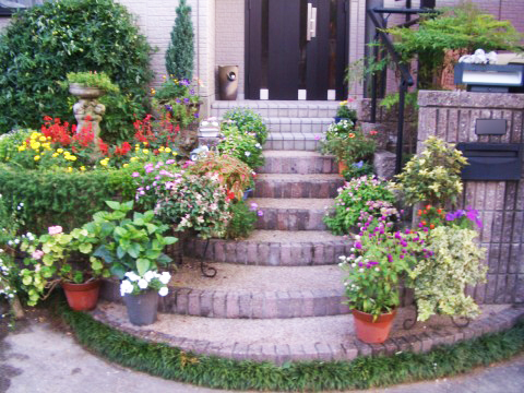 我家は大和ハウスさんの2代目の家ですが、最初に購入した建売は、北東に玄関が位置し、隣家があり朝日の射すのもちょっとの間と、暗いイメージがありました。諸般の事情あり、同じ土地に立替えましたが、駐車場の関係で今度は北向きの玄関!!!、でも何とか花のある玄関にしたいと無い知恵を絞り、大和ハウスさんにも相談し、また町中、特に新興団地の玄関先を車越しに覗いていろいろと參考にさせていただきました。この集大成が自慢できる我が家の玄関です。