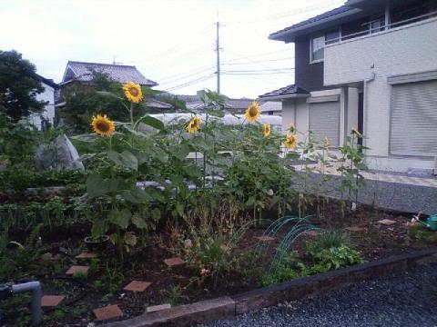 自慢できるような雰囲気には仕上がっていませんが、今年はひまわりを種から育てて、今は元気に咲いてくれています。