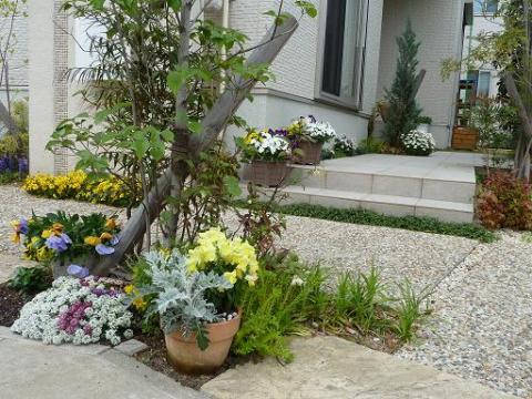 北向きの玄関故に冬場は花が寂しいですが、今は結構寒さに強い品種が出てきて、意外と花をきらすことがなくなりました。ただ、當たり前ですが日は全くあたらず、その點生育は遅れますが、一つの花を長いこと楽しめることはメリットでもあります。