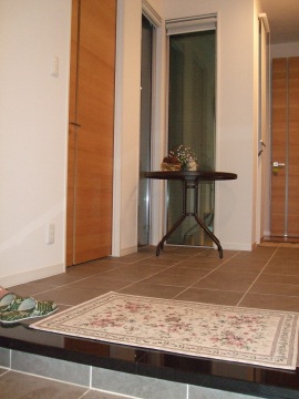 我が家の玄関です。床が石であることや大きな窓があって外が見えることで、來客があった時に「素敵ですね」と言われます。中々灑落ているなぁ、と思います。