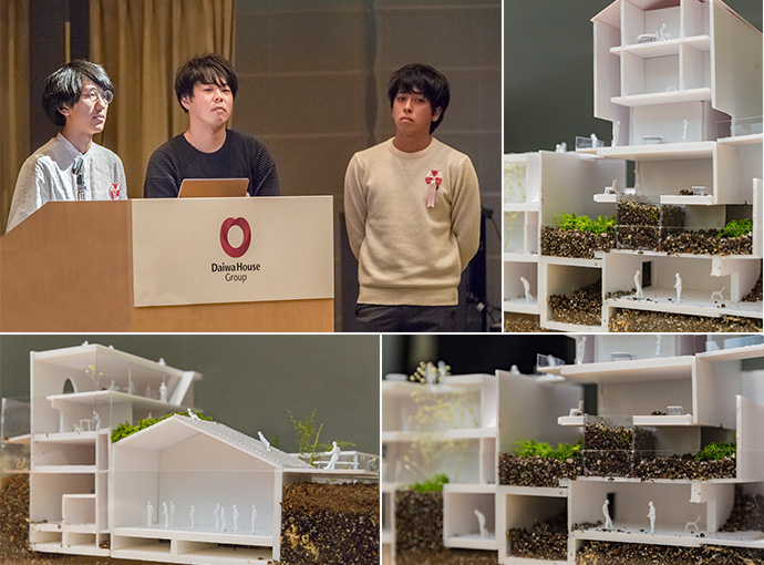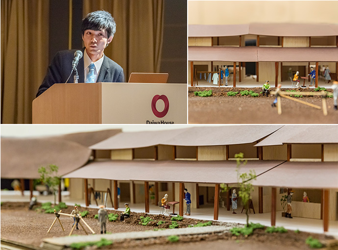 第9回から設けられた「大和ハウス工業賞」を授與するにあたり、大和ハウス工業のさまざまな設計部門の6名で審査を行いましたが、今回は過去の審査の中でももっとも難しい審査になったと思います。大和ハウス工業には住宅以外にさまざまな事業領域があり、われわれはそれらをボーダーレスに展開していくことを考えています。それを踏まえ今回は「ボーダーレス」を審査基準のひとつとさせていただきました。その中で賞として選んだのが「積もる地平線」です。空間的な垣根を取り払うことに加え、時間軸も含めた「地」の更新により街を「変化?進化」させていく。それが「人と人」、「人と自然」との関わりにも変化を生み出していくであろう可能性と希望を感じました。また、スクラップ&ビルドではなく、「活かし、変える」提案も含めて総合的に評価いたしました。