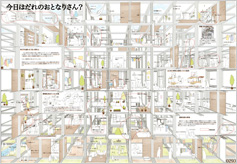 戦後、核家族を前提に生まれた「nLDK型住宅」の概念は、各部屋を分離し、住まい方を固定したことで、多様な現代社會を許容できなくなっている。家族形態や生活様式の変化に対応できなくなり戸建て住宅やnLDK型住宅が過渡期を迎えている今、多様な世帯構成を受け継ぎ、柔軟に許容できるサスティナブルな住宅が必要ではないだろうか。そこで狀況によって柔軟に変化することが可能な「ひとつの室がひとつの戸になることができる戸建て住宅」を提案する。多様な暮らしを許容する器となった住宅に暮らしを集積させ、住まいの歴史を継承する街が形成される。(応募案より抜粋)