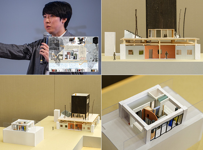 「大和ハウス工業賞」を授與するにあたり、大和ハウス工業のさまざまな設計部門の6名で審査を行いましたがそうした中で、今回は「あまのじゃくなエレメントたち」を選定しました。7つのエレメントのデザインには、提案者の実體験が反映されています。たとえば「不規則な階段」は山や神社の參道を登る際の、不規則な踏面や蹴上げ。「落とし穴のある玄関」では歩きスマホをしながら帰宅した時につまづいた経験など。それらを家と人が相互に働きかけるエレメントとした提案は、家と人の関係が希薄だという切実な問題意識を、よい意味で馬鹿馬鹿しく軽やかに建築に落とし込んでいると感じました。