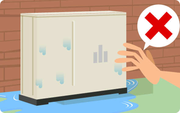 電気類が濡れた狀態(tài)のまま、突然通電すると、感電や火災(zāi)を引き起こす危険性があります。絶縁性のゴム手袋などを使用してメインブレーカー(漏電遮斷器)と安全ブレーカーをお切りください。