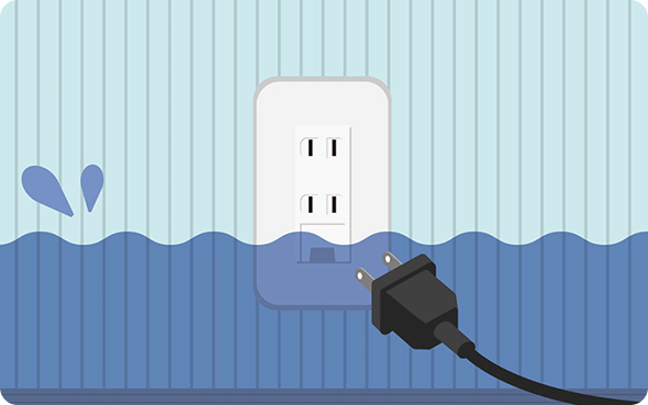 また、浸水した水に含まれた不純物や泥等によって電気回路がショートしたり、異常な発熱により発火したりする危険性もあります。たとえ乾いたとしても、一度水浸しになってしまったコンセントは使用をお控えください。
