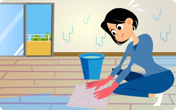 水が引いたら、床にたまった泥水や汚泥をくみ出し、乾燥させた後に消毒を行ってください。
