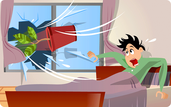 強(qiáng)風(fēng)による飛來(lái)物で、窓ガラスが割れる恐れがあります。