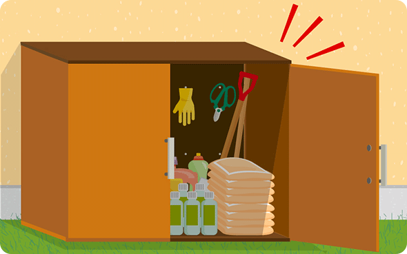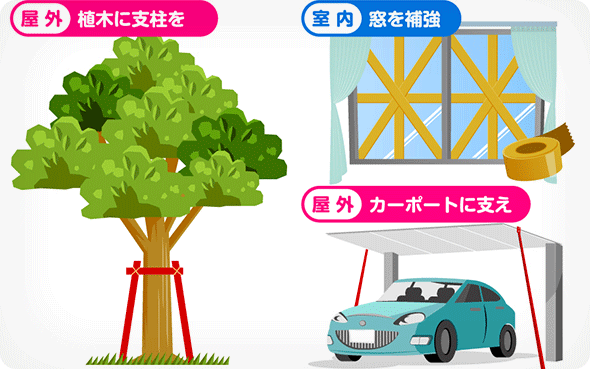 お庭やベランダにある物は散亂しないように片づけ、屋內(nèi)にしまえるものは収納しましょう。