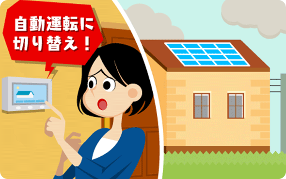 切り替えには、商用電源(電柱から流れてくる電気)を遮斷するなど、ブレーカーや電源の操作が必要です。
