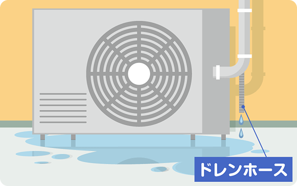 冷房?除濕運転中は室外機の內部や配管の接続部が冷媒ガスで冷やされて結露が発生することがあります。また、室外機の周辺が多量の水で濡れている場合は、室內機から排出されるドレンホースからの水や、雨水の可能性があります。いずれも故障ではありません。室外機周辺が水で濡れている場合は、エアコンフィルターがゴミで詰まっている可能性があるのでお掃除をして様子を見てください。