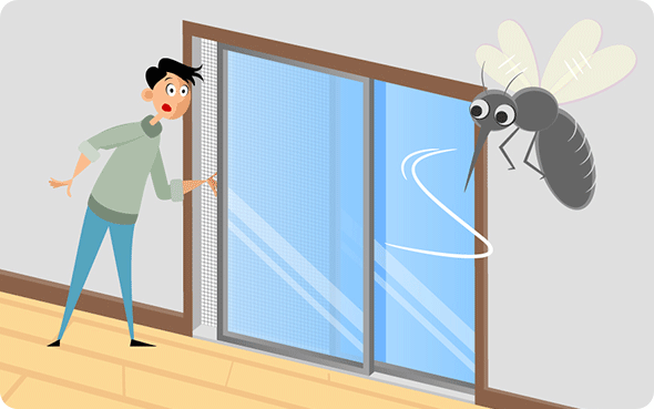 帰宅時に一緒に入ってきてしまうこともありますが、引違い窓の場合、網戸の位置によって蚊が入ってしまうすき間ができる場合があります。窓を開ける場合は、網戸の位置に注意しましょう。