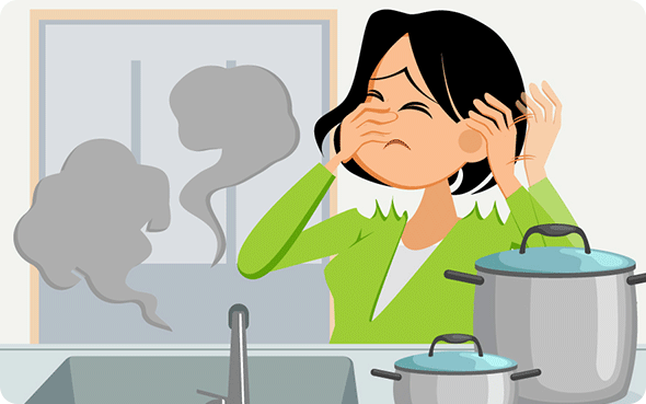 排水トラップの封水が蒸発しているかもしれません。封水がなくなると下水の臭いを抑える蓋の役目ができなくなり、臭いが充満します。臺所の水を流して排水トラップに水を溜め、窓を開けて換気をしていると臭いはなくなります。
