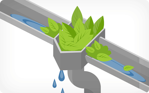 雨樋に落ち葉やごみが溜まっていると、雨水が下に流れず溢れてしまいます。その際はお客さまセンターへご連絡ください。