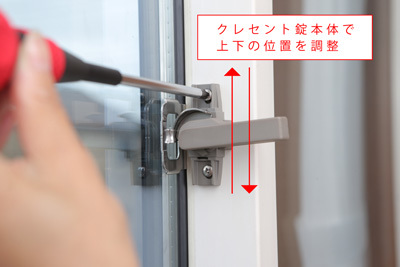 こうした癥狀は、クレセント錠本體と錠受けの位置を調整したうえで固定し直すことで解決できます。