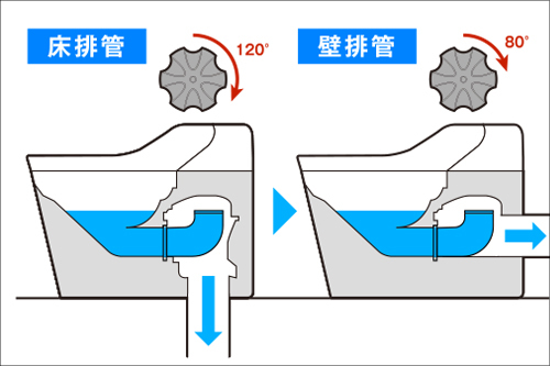 ハンドルを回す角度は、排水管の種類によって異なります。