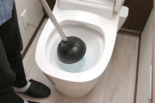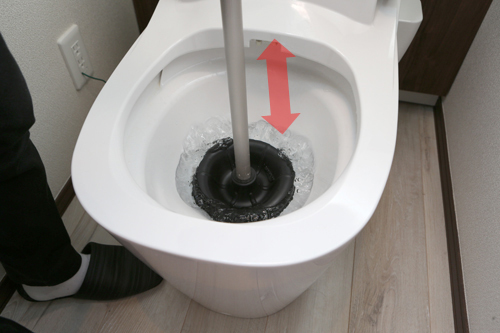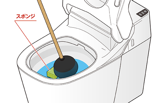 ゴミ袋などをかぶせて、穴からラバーカップの柄が出るようにして作業すれば、便器の水が周囲にはねるのを防げます。