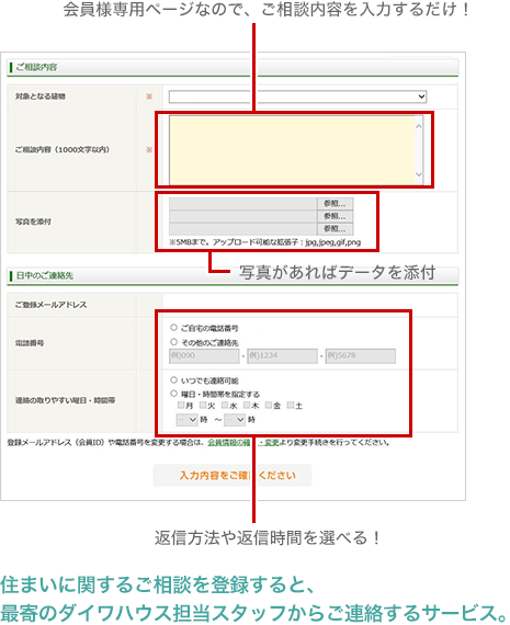 住まいに関するお問い合わせ窓口をWebページにてご用意しております。