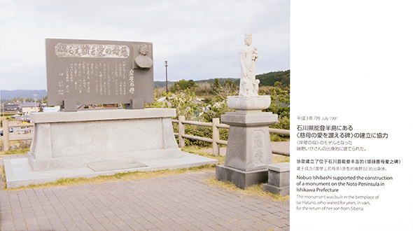 この碑は、第二次世界大戦後、ソ連による抑留から解放された息子の帰りを待つ母親の姿を描いたもの。1991年、能登半島に建てられましたが、石橋信夫もその建立に協力しました。彼の胸中には、おそらく自身が経験した3年間のシベリア抑留生活への思いがあったのでしょう。終戦後、極寒の地での過酷な環境を生き抜いた苦難の経験が「人々の暮らしをより豊かにしたい」という信念となり、1955年の大和ハウス工業創業につながったのです。