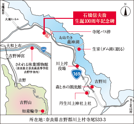 創業者を偲び、事業を通じて社會に貢獻する大和ハウスグループの志を後世に語り継ぐため、奈良県吉野郡川上村の當社所有地に、2021年に生誕100周年を迎える創業者の 記念碑を建立しました。今は無き生家の方角を望む胸像や足跡をたどる陶板モニュメントを設置しています。