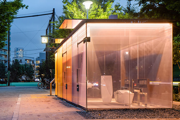 日が暮れて、渋谷の空に夜が広がり、公園や道は薄暗がりの中。だが、そこに人の往來(lái)が絶えない場(chǎng)所がある。人々が向かう先には「見(jiàn)たことのないような公共トイレ」があった。