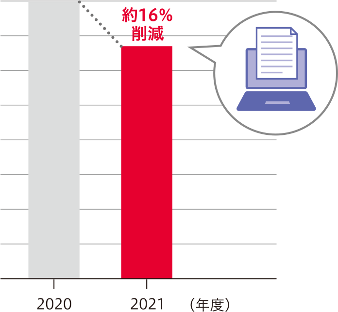 今後も引き続きペーパーレス化を推進するとともに、定期的な文書の棚卸を実施し、社內で保有している紙の削減に努めます。また、外部環境の変化にともなうトレンドもおさえながら、ペーパーレス化推進のための新たなツールやシステム開発の検討を積極的に進めていきます。