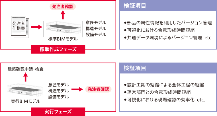 國土交通省の令和3年度BIMモデル事業【先導事業者型】として「業務効率及び発注者メリットを最大限に創出する【役に立つBIM】の効果検証」が採択され(*4)、以下の検証を行いました。