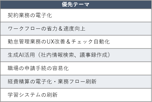 すべての“従業員へ” より“心躍る” “ストレス”ない働き方を実現すべく、殘りの優先テーマやそれ以外の改善テーマについても、順次、取り組みを推進していきます。