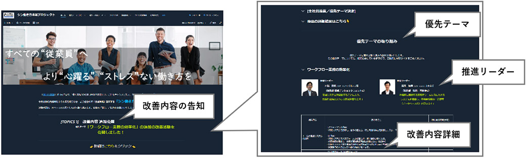 既に著手、実裝できた改善內容については、プロジェクトの社內共有サイトで公表し、隨時、現場の評価やフィードバックを受けながら、事業現場が実感できる改善となるように取り組みをアップデートしています。