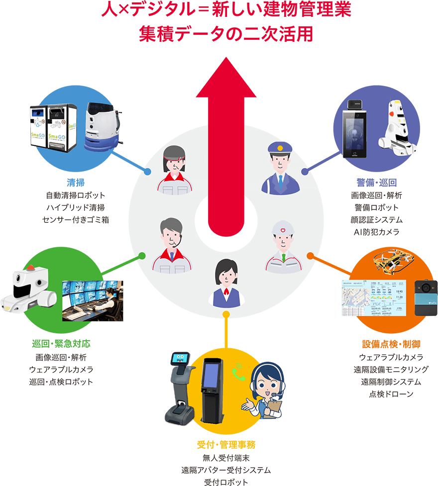 當社グループは省力?省人からさらに一歩進んで、各種IoT機器から得られるデータを集積?分析し、管理業務の數値化?見える化を図ることで、お客さまにも透明性と付加価値の高い管理業務を提供していきます。