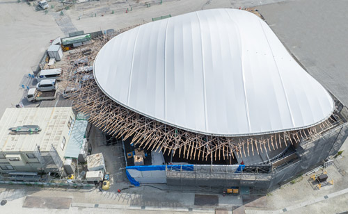 中島さち子氏監修のもと小堀哲夫建築設計事務所のデザインを受けて、當社および株式會社フジタの設計?施工各擔當者をコアメンバーとして、多方面の専門家(*1)が集まり、複數の會社を跨いで同時に実現施工可能な形狀を協議し、最終形を確立してきました。