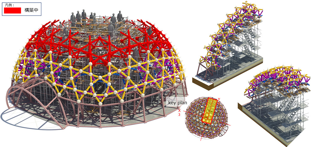 ブルーオーシャン?ドーム新築工事はNPO法人ゼリ?ジャパンが主體となる企業のパビリオンです。當社は施工を請け負っております。施工物件は、球體狀の外裝であるため、高い技術的水準が求められ、これを実現するためには、生産設計から施工までBIMを活用することが本取組において適切だと判斷しました。