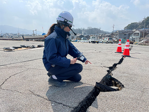 令和6年能登半島地震においては、自動(dòng)配置プログラム、人工衛(wèi)星を利用したGNSS測(cè)量、スマートグラスによる遠(yuǎn)隔現(xiàn)地調(diào)査を取り入れ、現(xiàn)地調(diào)査から配置図作成までの業(yè)務(wù)において、従來の業(yè)務(wù)時(shí)間に比べて10時(shí)間以上図面を早く作成することができました。