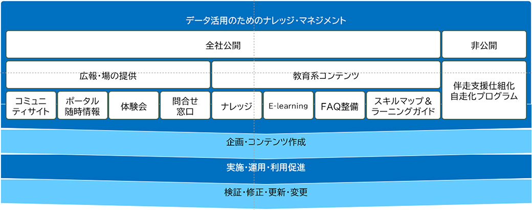 これまで行ってきた伴走支援活動から得られたノウハウや、現(xiàn)場での取り組み結(jié)果を社內(nèi)事例として積極的に発信していくことで、問題意識を持っている現(xiàn)場の社員にデータ活用を考えてみるきっかけを提供しています。ナレッジポータルからの発信だけでなく、社內(nèi)事例を題材に実踐レベルのeラーニングを公開したり、未経験者に體験會の場を設(shè)定するなど「知る機(jī)會」を意図的に創(chuàng)りこんでいくことでデータ活用に興味を持ち、取り組み始めた現(xiàn)場が目に見えて増加傾向にあります。