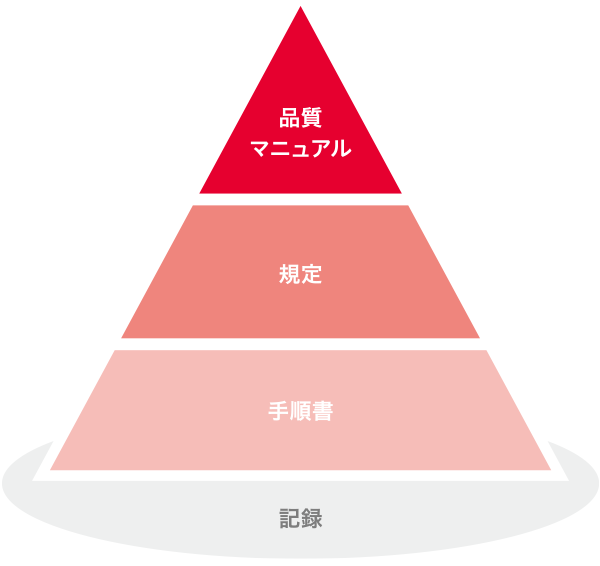 また、QMSの運用は、「品質マニュアル」「規定」「手順書」「記録」の4つの體系に基づいて文書化されています。これらの文書は継続的に見直しが実施され、最新かつ適切な狀態に保たれることで、品質活動の透明性と一貫性が確保されています。