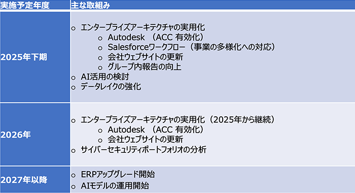 進化するIT戦略の一環として、エンタープライズ?アプリケーションへの投資と、ビジネスの変革を推進するための社內システム統合に取り組んでいます。現在の取組みを踏まえ、データの可視性向上、AIの活用、サイバーセキュリティの強化に引き続き焦點を當てます。