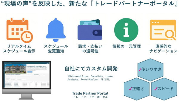 當社は、優(yōu)れた住宅を提供するためには、信頼できるトレードパートナー(業(yè)者さま?サプライヤーさま)との強固な関係構(gòu)築が不可欠であると考えています。私たちの目標は、単なる情報提供にとどまらず、トレードパートナーの業(yè)務効率と成功を後押しするテクノロジーを提供し、「選ばれるビルダー」になることです。ホームバイヤーポータルの成功を経て、今度は取引先向けの「トレードパートナーポータル」を再構(gòu)築することに注力しました。この取り組みは、トレードパートナーとの真のパートナーシップを?qū)g現(xiàn)し、共により良い未來を築くための第一歩です。