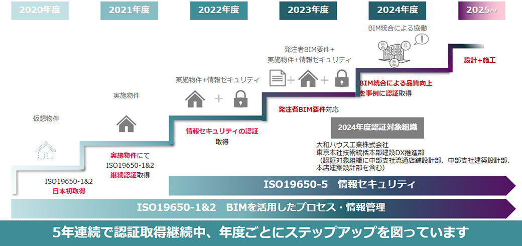 當社は2020年度にISO19650-1&2を日本で初めて取得し、2021年度には體制を強化した上で実物件にて継続認証を取得しています。
